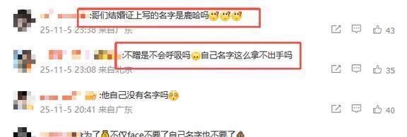 结婚这么大一桩事,他竟然用“鹿哈”的名号上了热搜。所以被人嘲笑了:结婚证上写的是鹿哈吗?“你自己的名字就这么不值钱吗?”有网友直接骂他“为了出名连脸都不要了”。